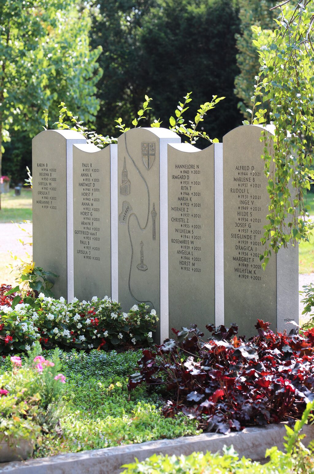 Im neuen Urnengemeinschaftsgrab auf dem Friedhof Heerdt findet sich ein Ort des Gedenkens, der Ruhe und der Verbundenheit. Im Zentrum dieses besonderen Grabfeldes stehen die „Drei Säulen der Ewigen“.