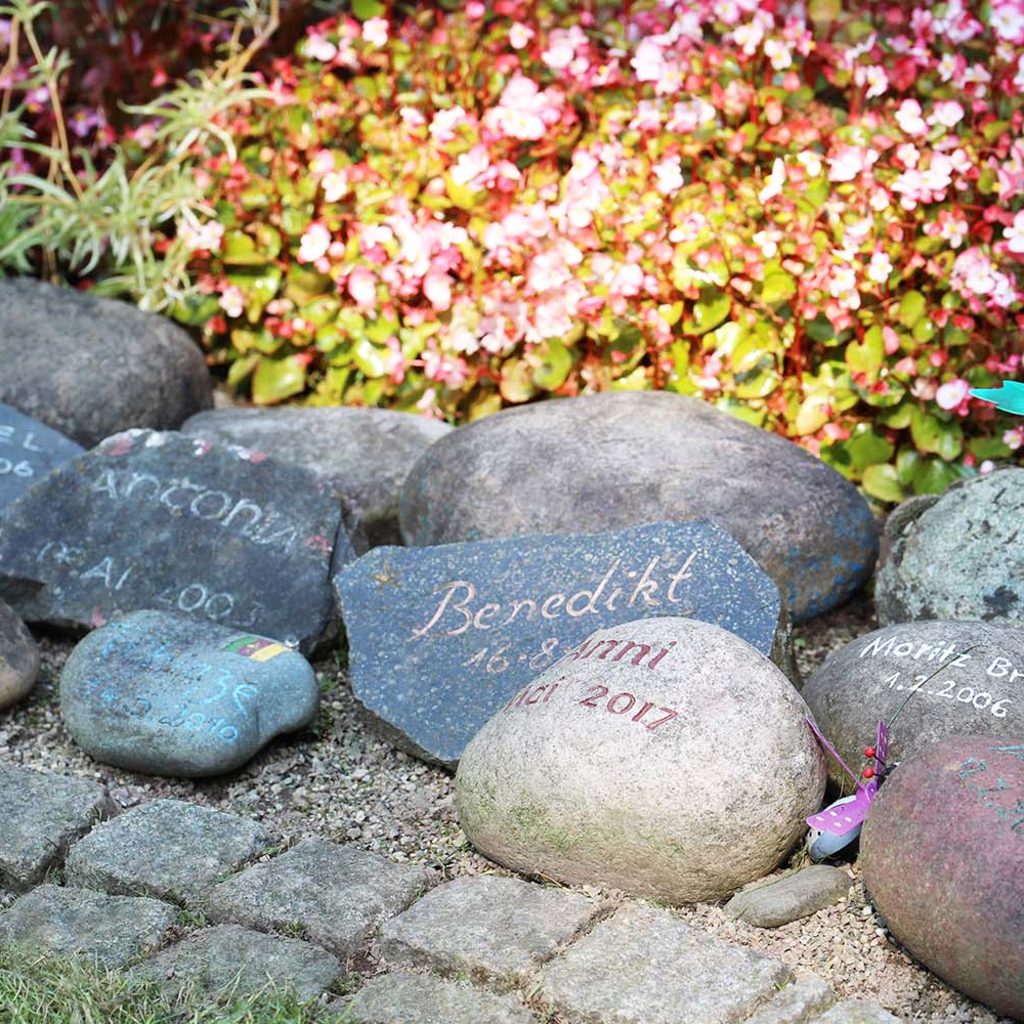 Denn auf diesem Gräberfeld sind totgeborene Kinder bestattet, auch Schmetterlings- oder Sternenkinder genannt. Viele hatten schon einen Namen die nun auf kleinen Gedenksteinen stehen, welche die Eltern dort niedergelegt haben.